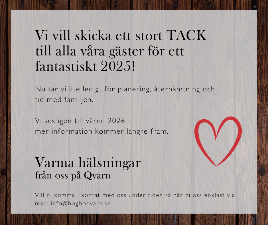 Önskar ni boka lunch/konferens/middag etc.? Skicka en förfrågan på mail eller kontakta oss på telefon så hittar vi en lösning tillsammans. Välkommen!